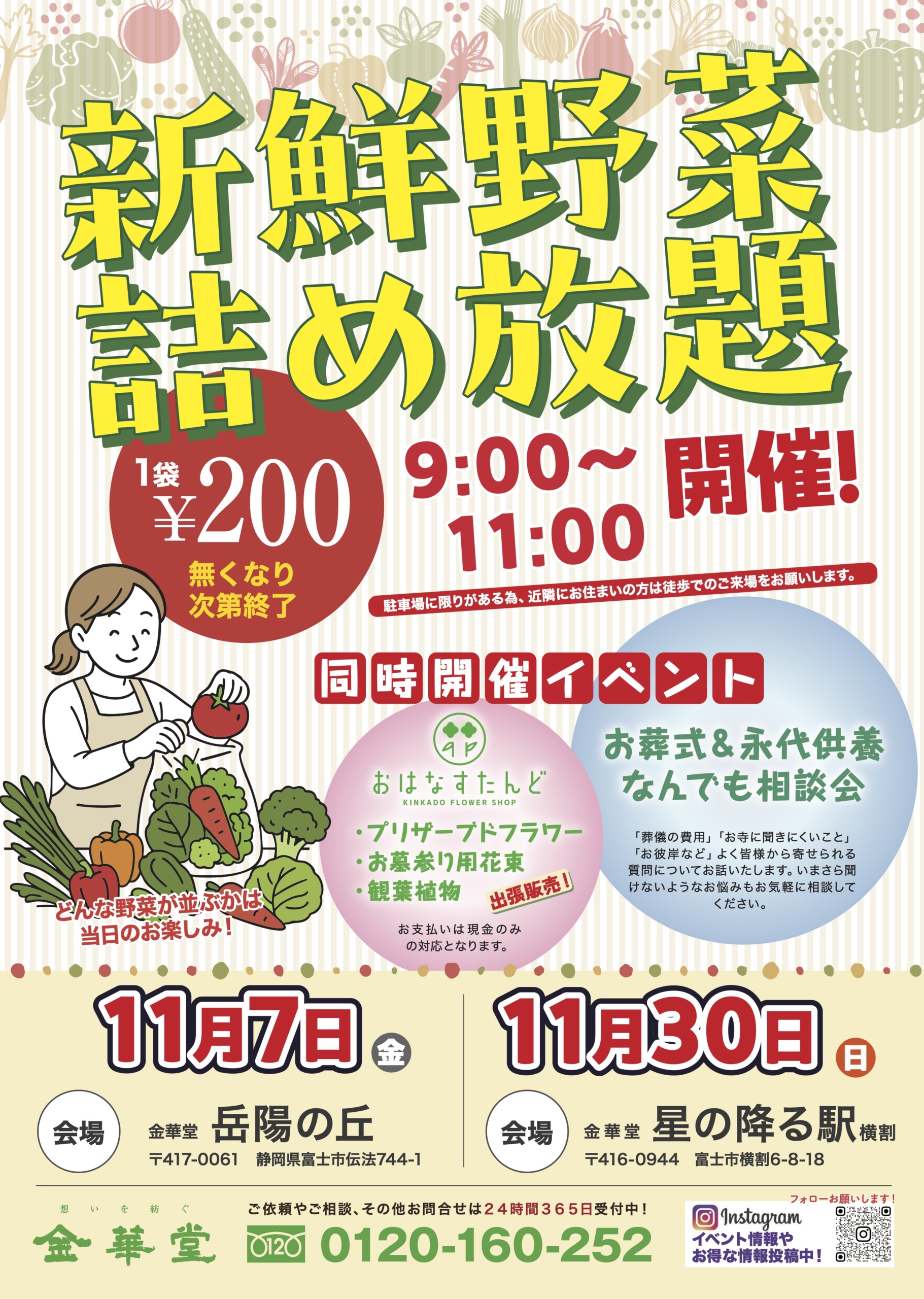 金華堂 新鮮野菜詰め放題を開催いたします。