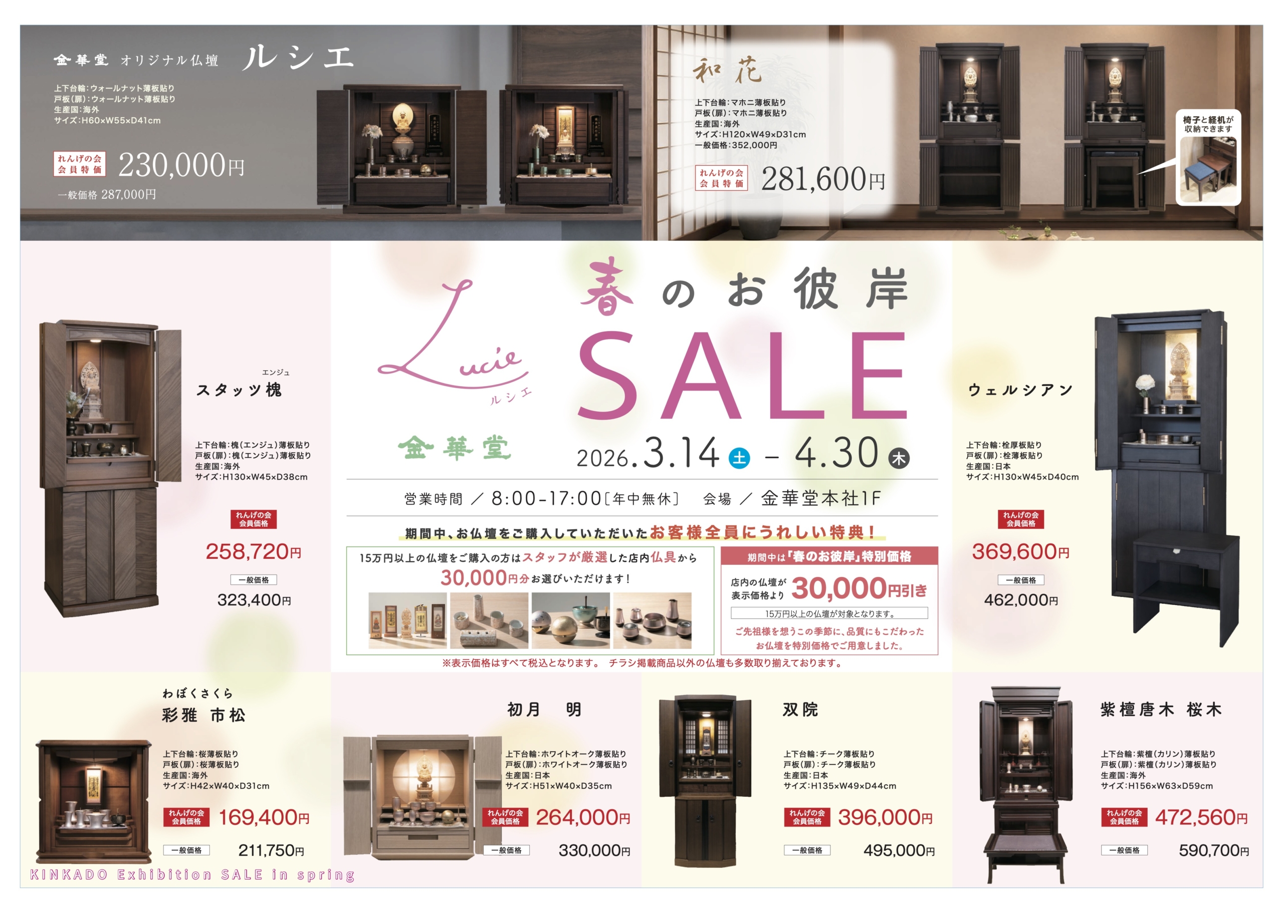 ルシエでは現在、春のお彼岸セールを開催しております。